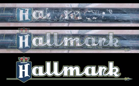 Once scanned into a computer, these photos were used as a template to "trace" a replica design over the top. In my case I used Adobe Photoshop as this was the tool I had to hand. However, it would have been better to used a vector-based editor such as Adobe Illustrator, or Microsoft CorelDraw, because these were preferred tools that the print-shop used. Below is a sample image, showing: