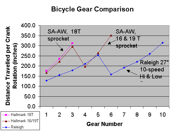 gearing obtained with the three-speed Sturmay Archer AW (wide range) hub