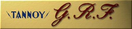 GRF Enclosures(from Tannoy sales information) The GRF enclosures provide a compound expanding source, an exclusivefeature first introduced in the Tannoy Autograph enclosure. The effect ofthis is that the wave front area varies with frequency, giving an outstandingillusion of realism to both solo and orchestral music. In addition, thesystem has all of the well known advantages of horn loading (eg: excellentbass radiation and transient response, but none of the spacial distributiondefects associated with conventional horns or multispeaker systems. The low frequency diaphragm of the 15-inch Dual Concentric Loudspeakeris rear horn loaded down to 30 Hz, while between 350 Hz and 1,000 Hz a newacoustic coupling device gives much improved front radiation. Above thisfrequency the non-directional horn loaded high frequency unit, which formsan integral part of the Dual Concentric Loudspeaker, takes over, servingto preserve the impression of loaction so necessary to ensure realisticreproduction of vocal and solo instrument music. The result of this entirelynew form of horn loading is that, while large orchestral and choral workshave a snese of spacious wave front, both chamber music and solo and vocalmusic possess that intimacy very necessary for full enjoyment. The GRF enclosure is a fitting compliment to the 15-inch Dual ConcentricLoudspeaker, when the highest standard of performance is required. Technical SpecificationFrequency Response: 30 Hz to 20,000 +/- 3dB Power Handling: 50 Watts Efficiency: 10% approx Bass Horn Development: Effective loading down to 30Hz Size: Finish: Sapele Mahogany, or Figured Walnut Fabric: Vynair. Corner GRF Design Plans(courtesy Alain Kobsch, France) Drawing-1; Drawing-2;Drawing-3; Drawing-4. Drawing-1 may be used as a cutting template if it is printed at full-scale.This template was kindly computer re-drawn by Alain Kobsch of France.