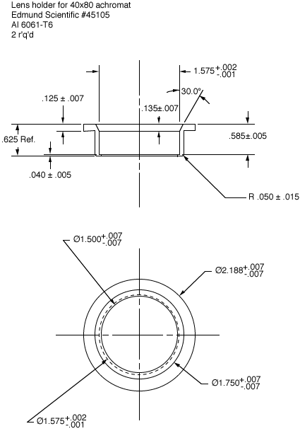 The lens holders for the viewer were designed by John Bercovitz. A design drawing is attached, from which the components could be turned by a machinist. The holders are finished in black anodised aluminium, and have been carefully designed to allow the maximum field of view to be obtained.