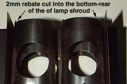 2mm was cut into the base of each flue surrounding the lamps. This is shown