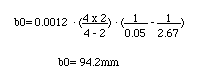 As an explanatory example of the use of this equation, suppose the near point (an) is 2m, and the far point (af) is 4m, the lens focal length (f) is 0.05m, the camera is focussed on 2.67m to maximise the use of sharp focus, and the desired deviation (d) is 0.0012m, then the camera base can be set to: